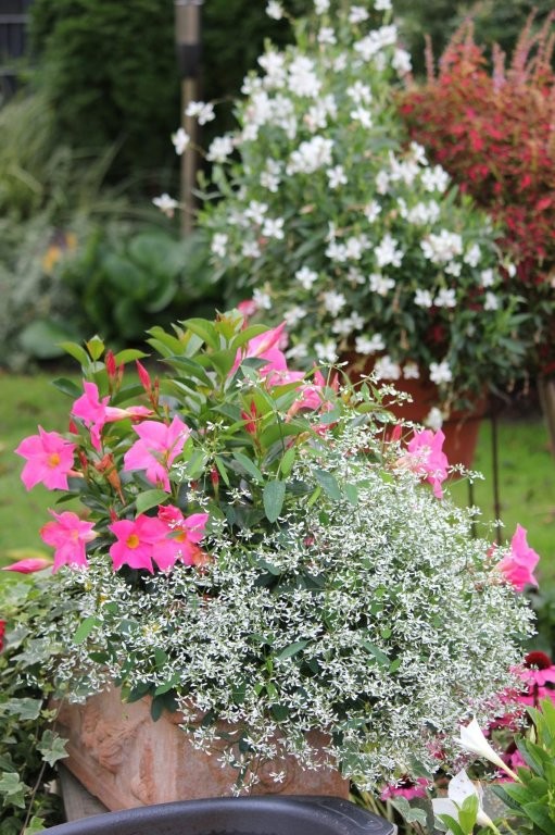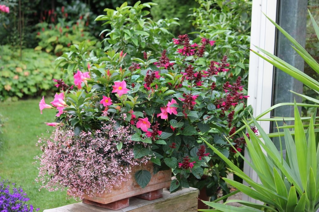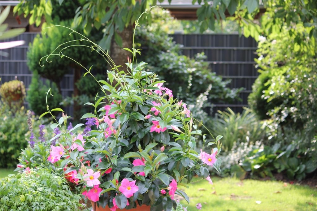 The Mandevilla ‘Bella’ is a Combo-Master and should not be used only as a single plant item or solitäre. Use it in combinations and have great effects!