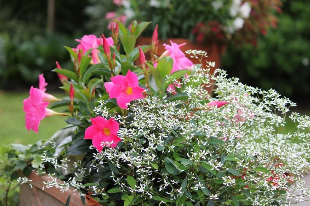 The Mandevilla ‘Bella’ is a Combo-Master and in combination with Bedding Plants, the Mandevilla ‘Bella’ are part of continously flowering creations for maximum flower power and garden fun!