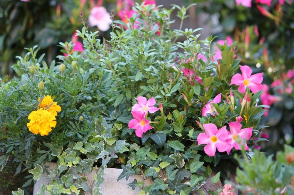 The density in a planting might be eventually a danger for Botrytis, Mold and other fungus issues. Mandevilla ‘Bella’ doesn’t care!