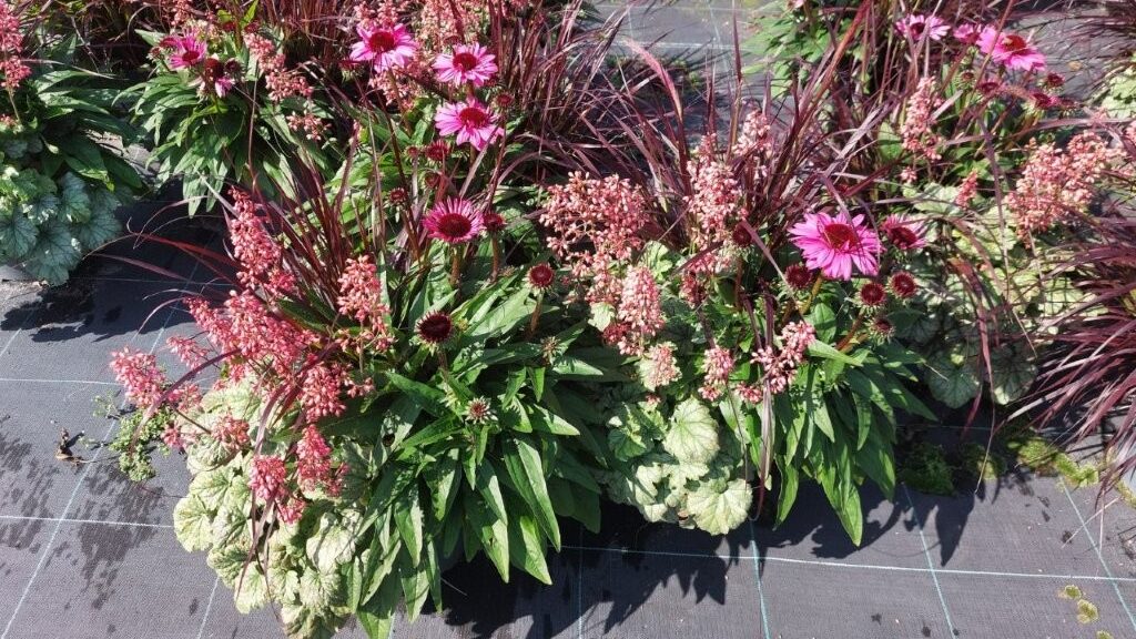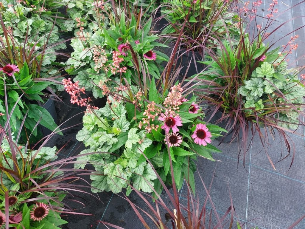 Echinacea ‘SunMagic’ with Pennisetum ‘Rubrum’ and Heuchera ‘Starry Nights’ from Kientzler